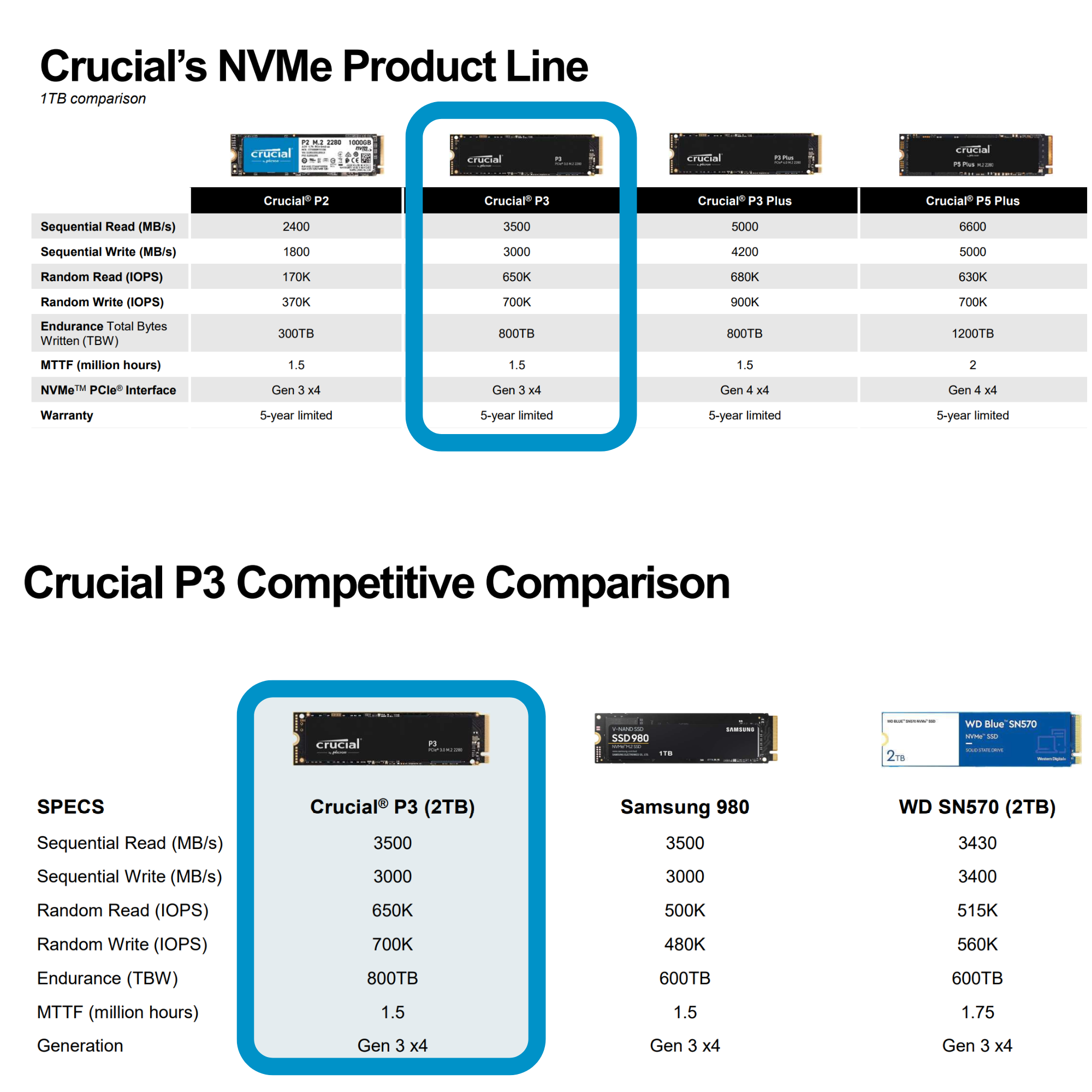 Crucial P3 PCIe M.2 2280 SSD - CTXXXP3SSD8