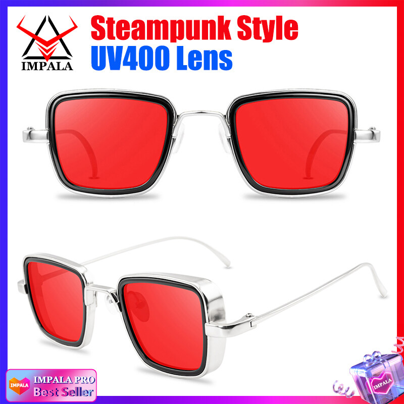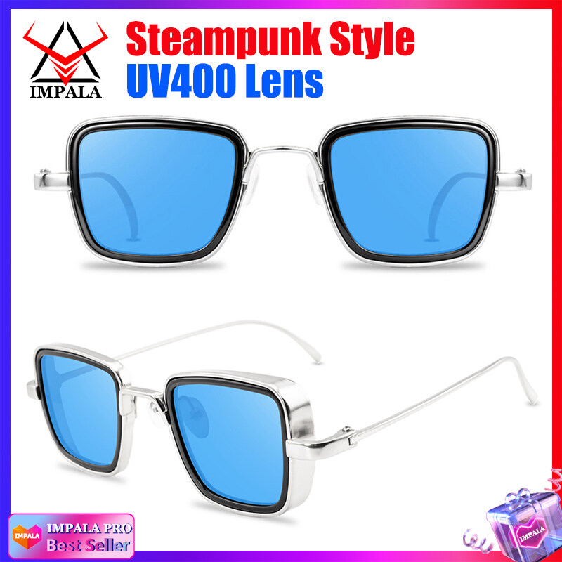 IMPALA QT110W Retro Sunglasses for Men Anti Glare Metal Frame UV Protective Sun Glasses for Driving Fishing Black Spectacles