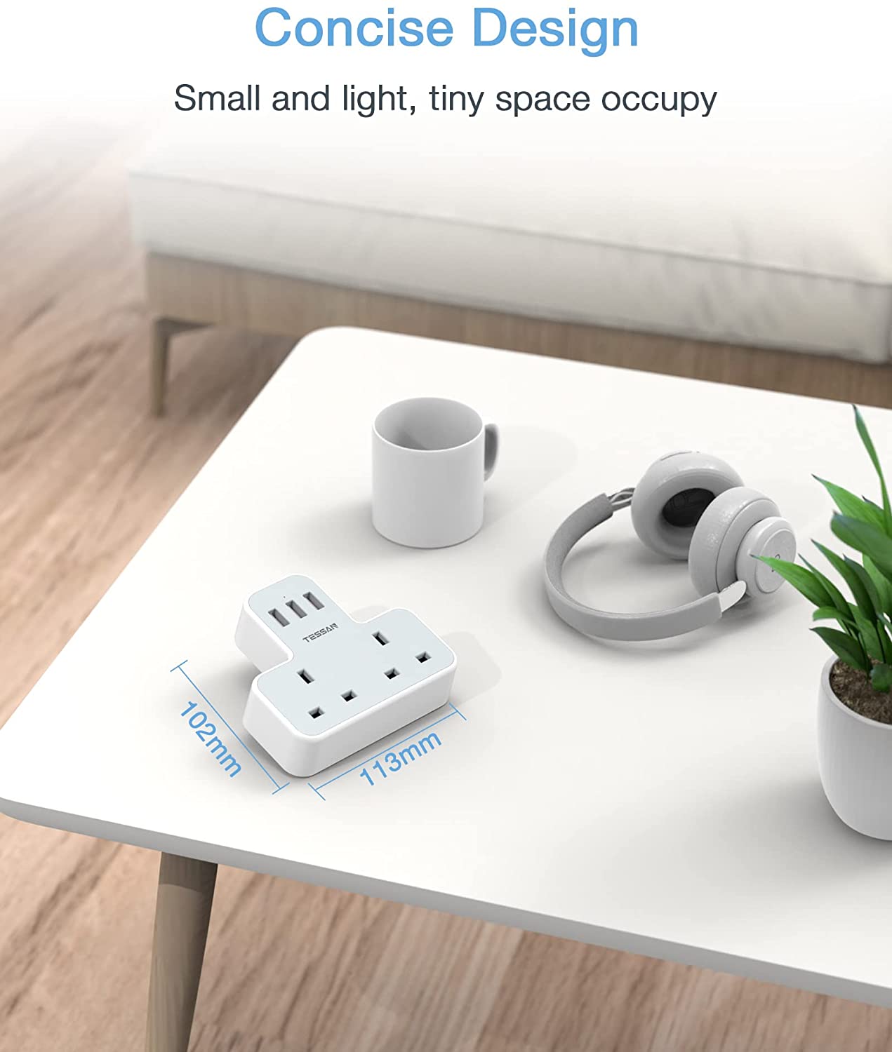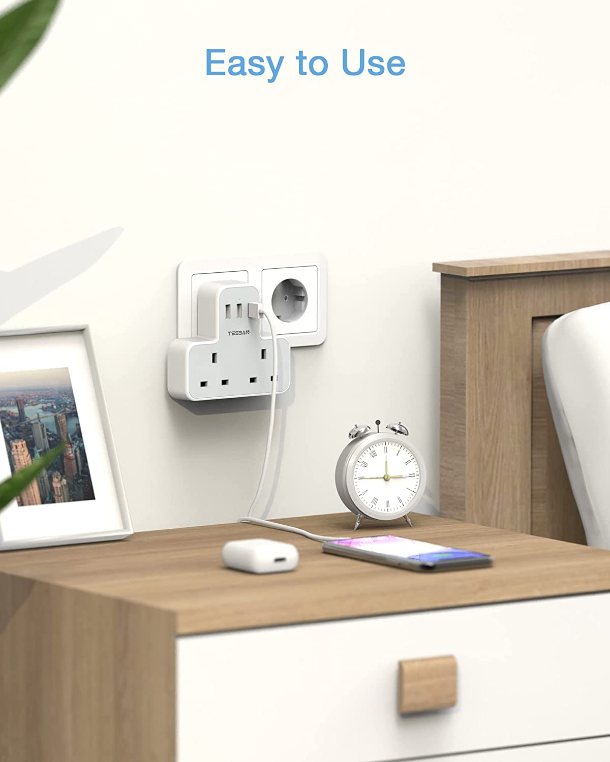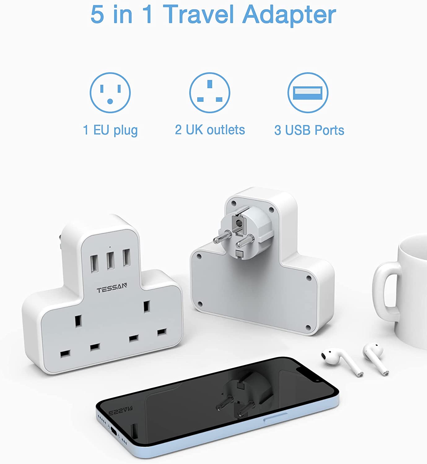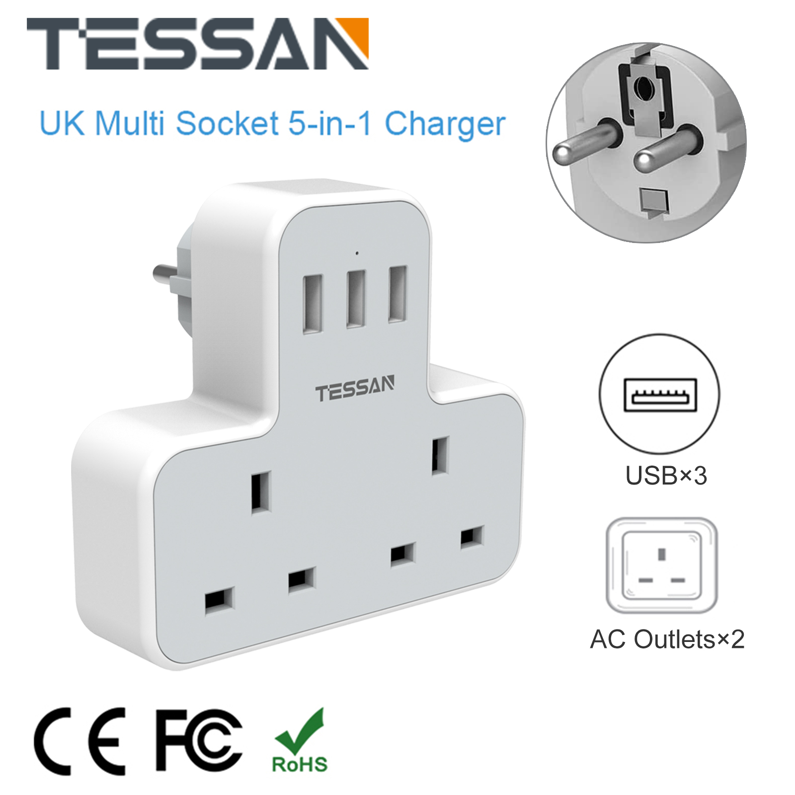TESSAN 2 Way EU Adapter with 3 USB Ports