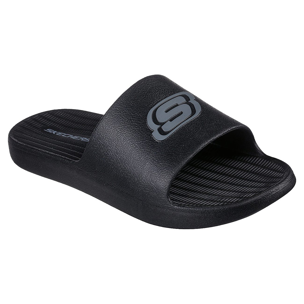 Warm-weather style and easygoing comfort combine in Skechers Foamies®: Darvon. This casual sculpted one band slide sandal features a flexible EVA upper with a contoured cushioned footbed.