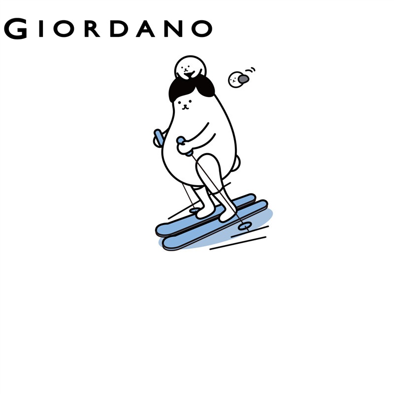 GIORDANO Women WHIKO Series T-Shirts 100% Cotton Cute Print Pattern Casual T-Shirts Long Sleeve Crewneck Simple Tee 99392150
