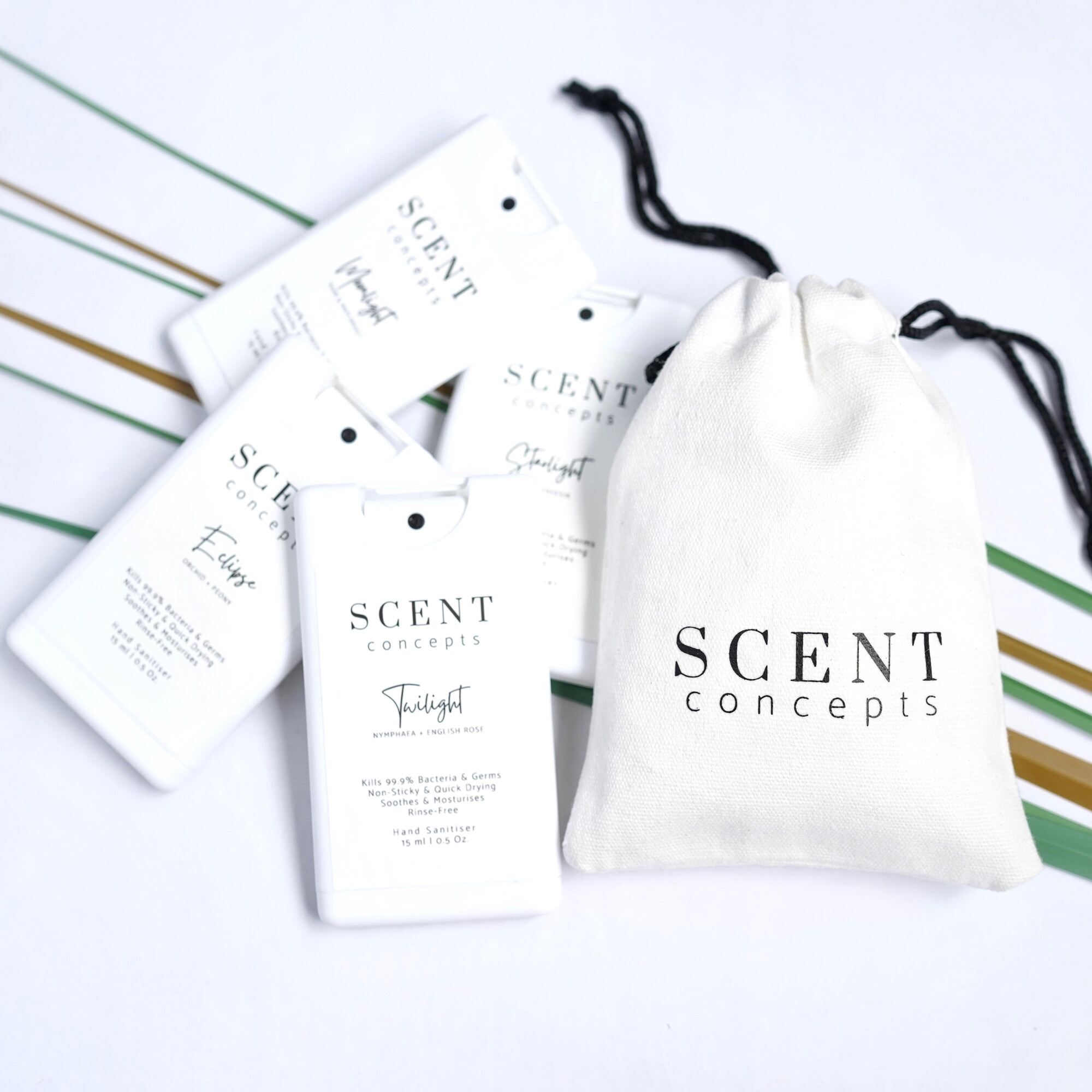 [Scent Concepts] 2 Pcs Moonlight (Pear & Patchouli) Fragrance Hand Sanitiser 15ml - Pocket Sized Soothing Moisturising Non Sticky Rinse Free AntiBacterial with Aloe Vera Juice