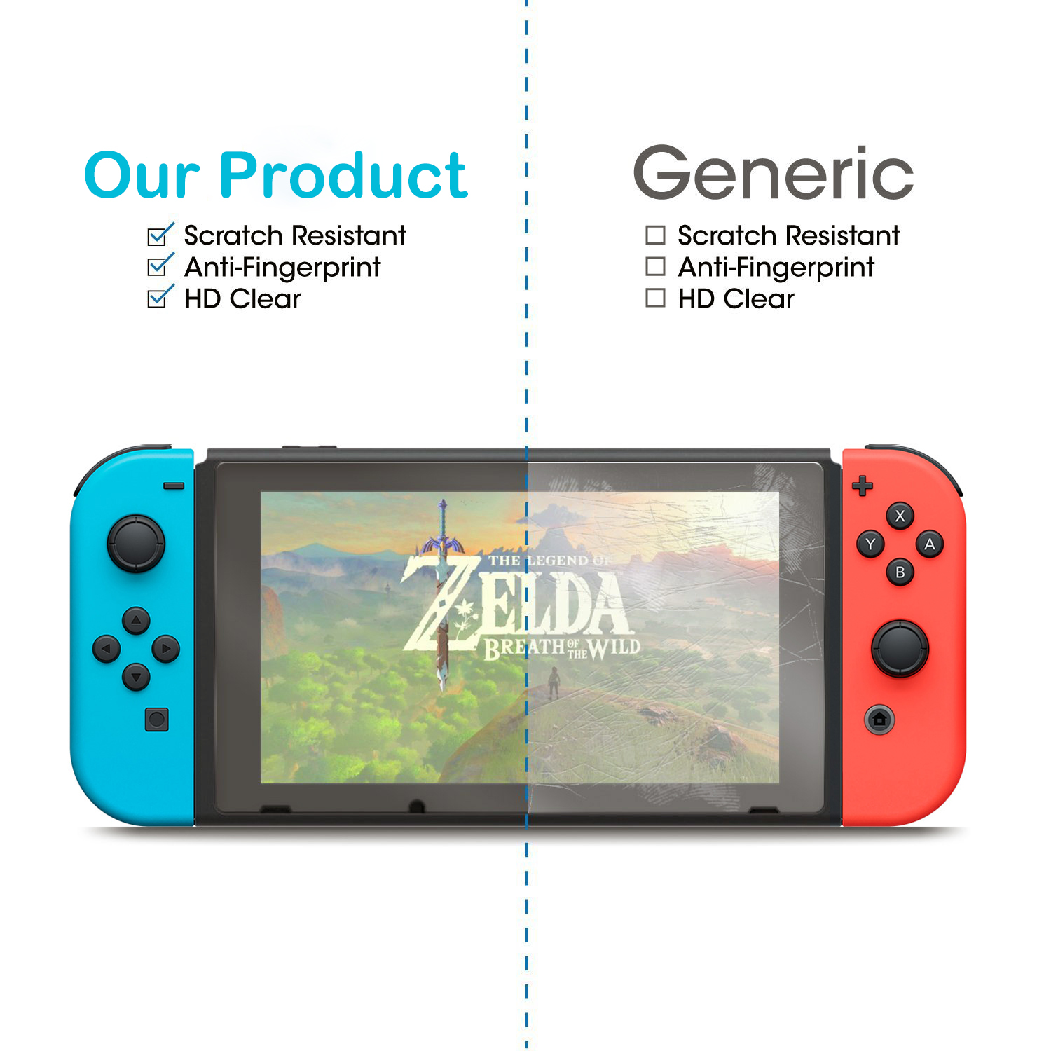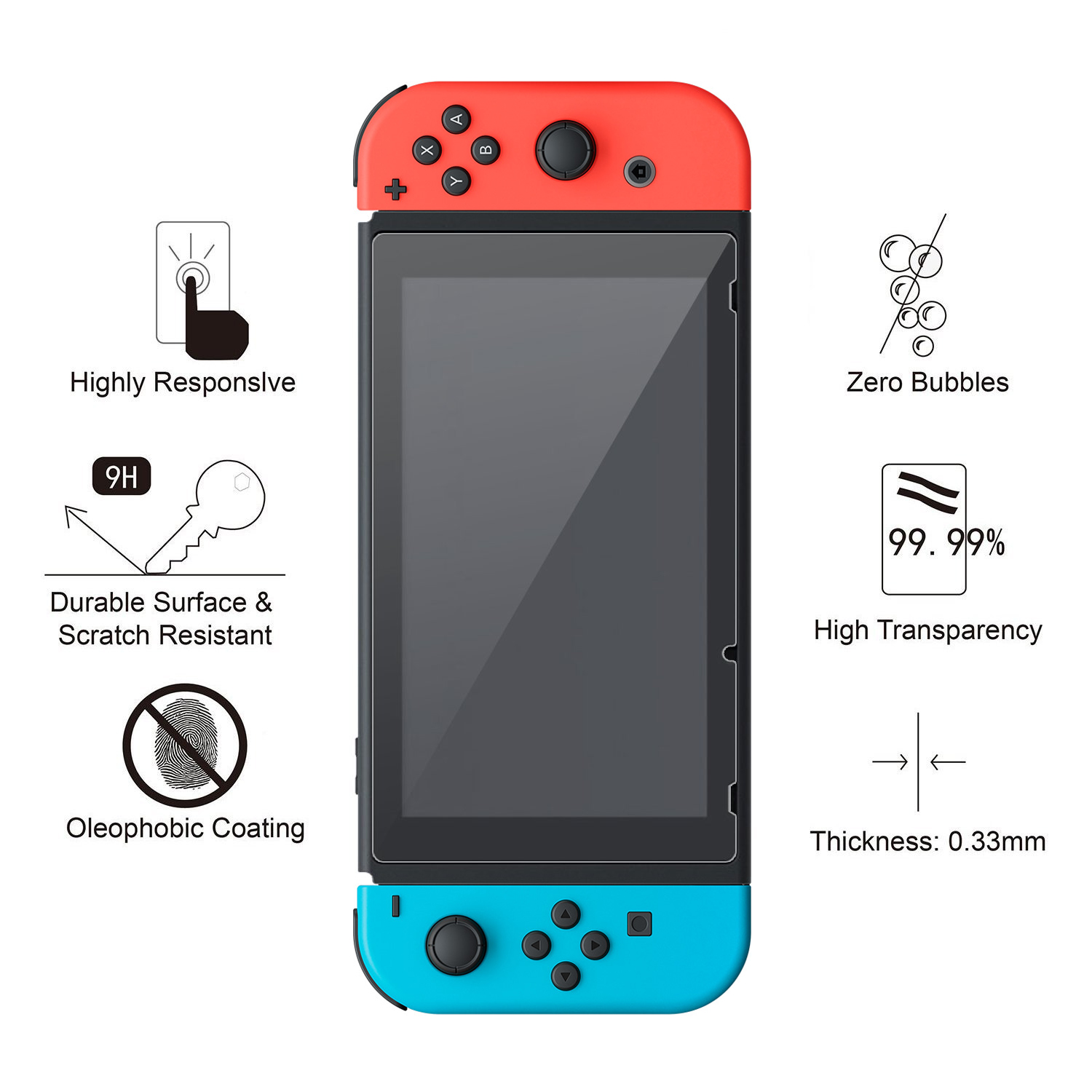 • Scratch Resistant - This screen protector can effectively protect your Nintendo Switch from unwanted scuffs and scratches by knives, keys, and some other hard substances.