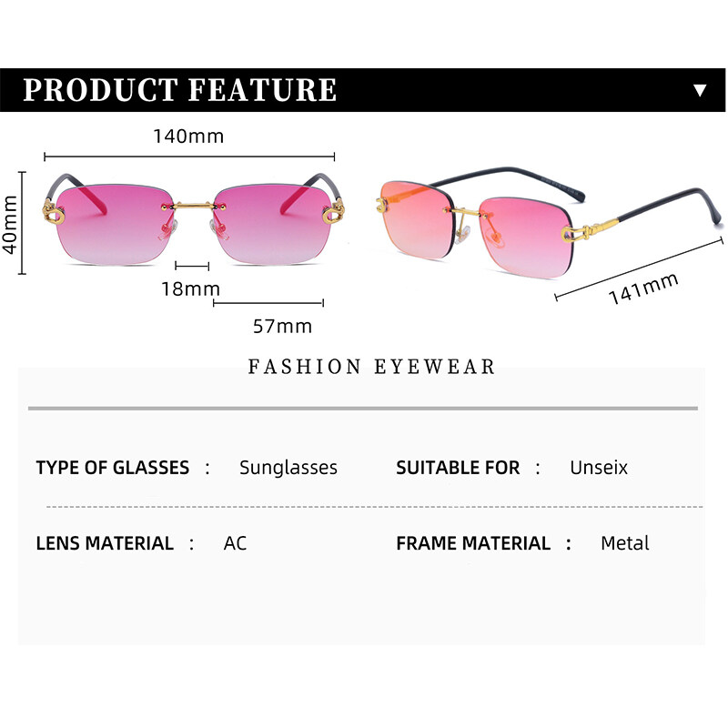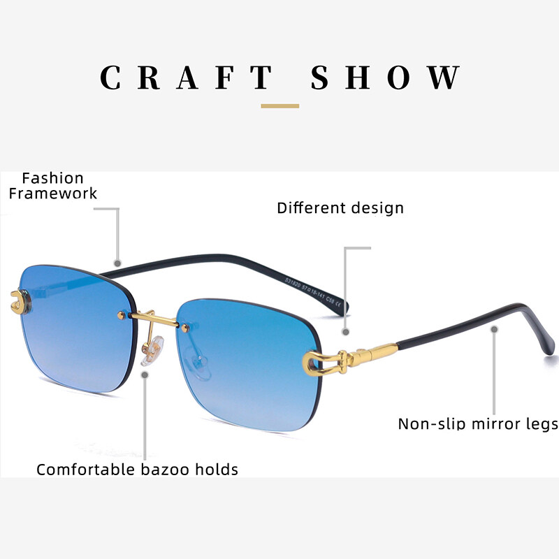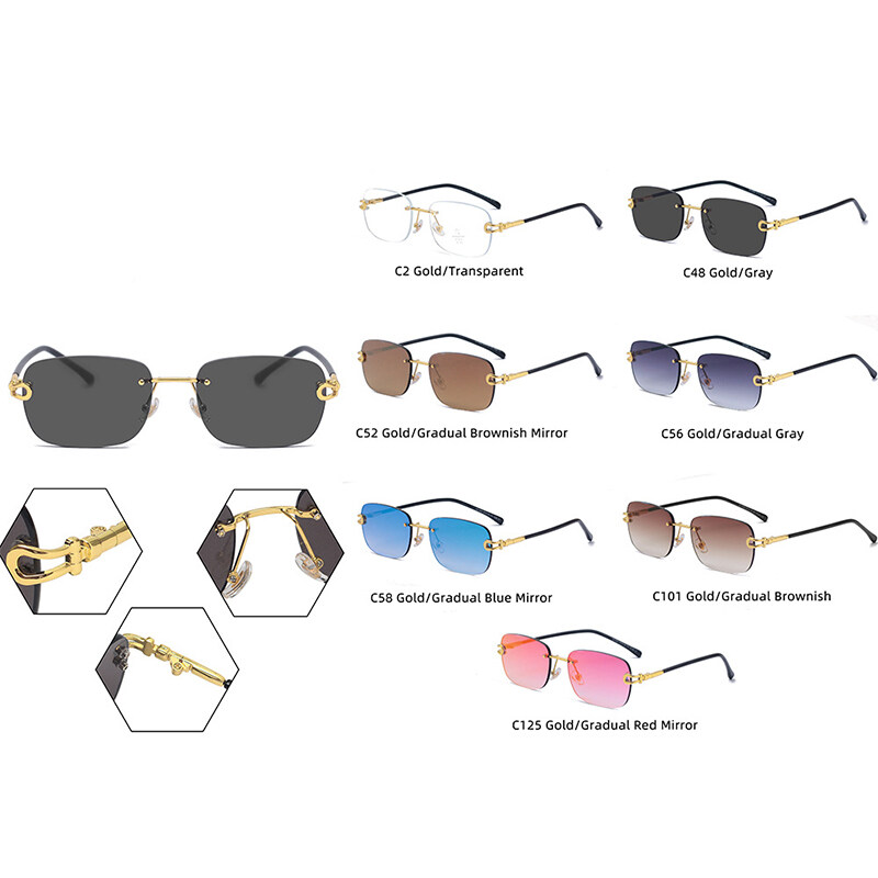 Shades for Men 2022 New Sun glasses Women's Rimless Anti-UV Sunglasses Fashion Anti-blue Light Glasses PTQ