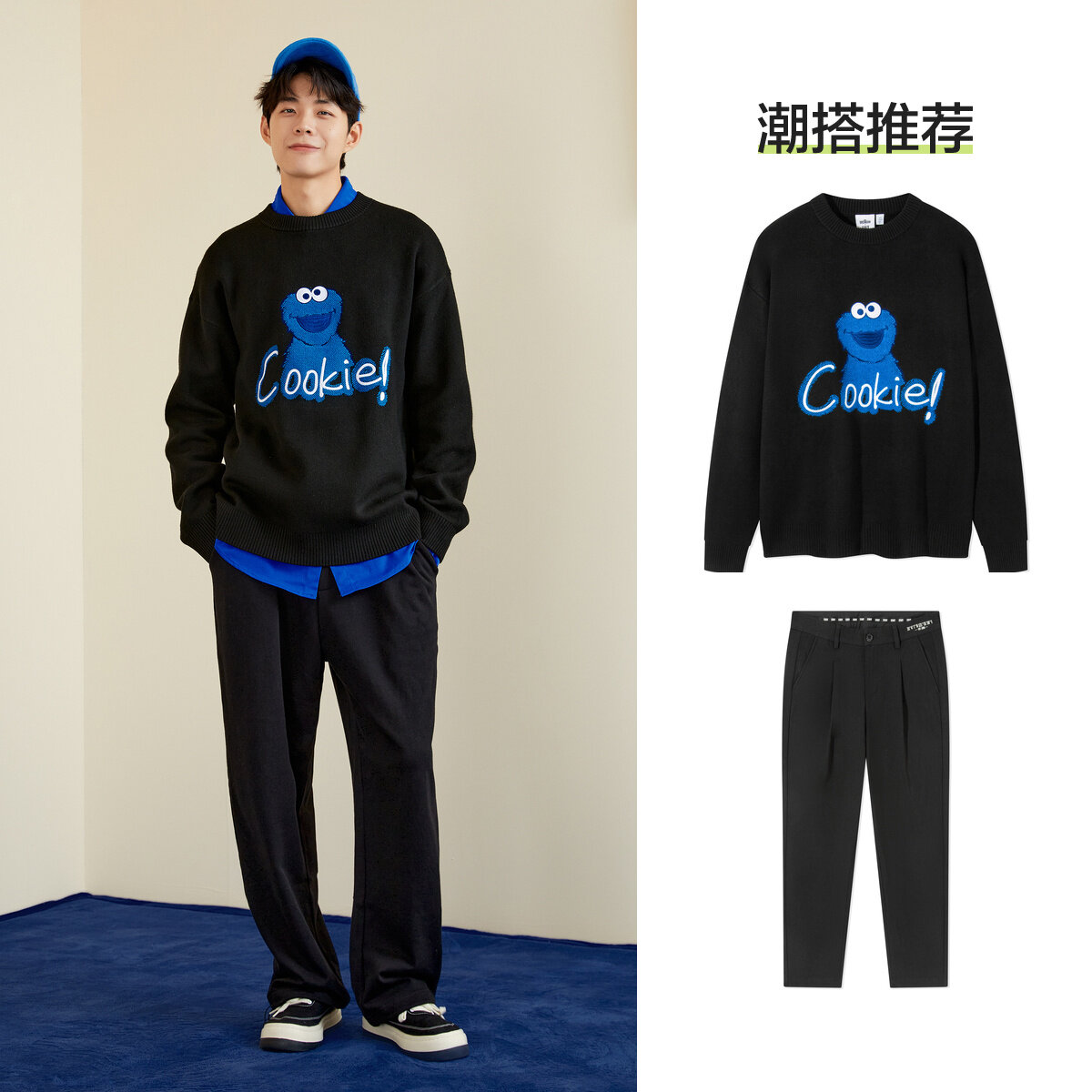 Semir Sweater Men New Cartoon Korean Version Off-Shoulder Knitted Antistatic 2022 Winter Round Neck Casual Sweater For Man