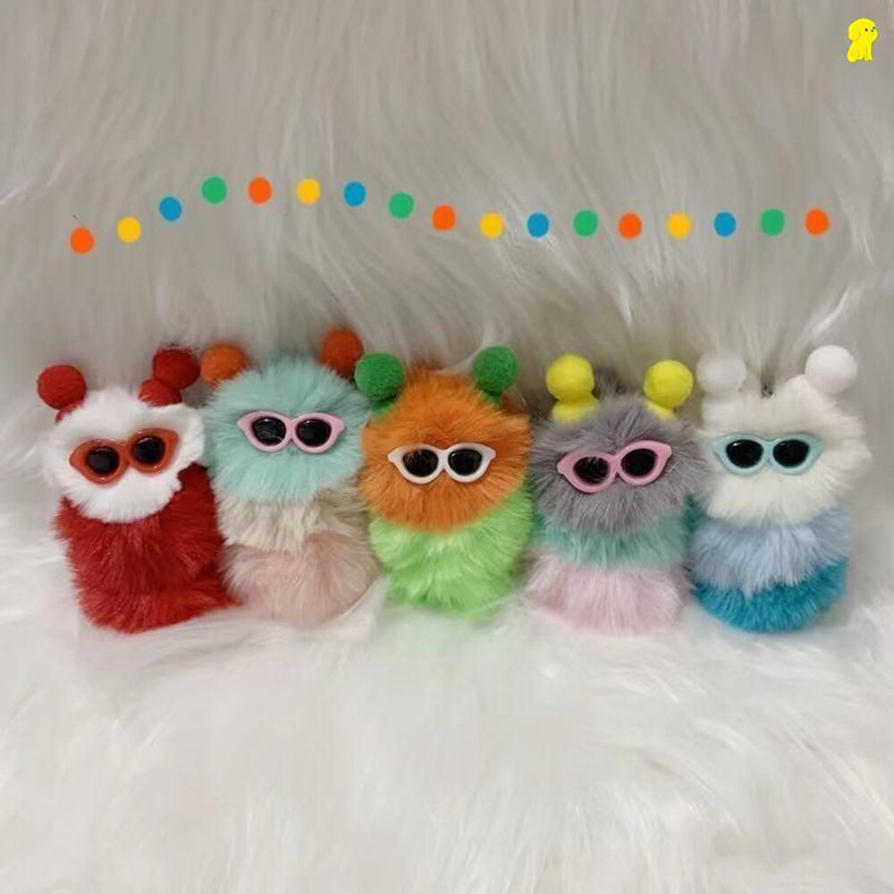 【Fashion-jewelry】Cartoon Cute Caterpillar Keychain Plush Ornament Rabbit Ball Ladie Bag Ornament Mini Plush Car Keychain Lanyard Jewelry Gift