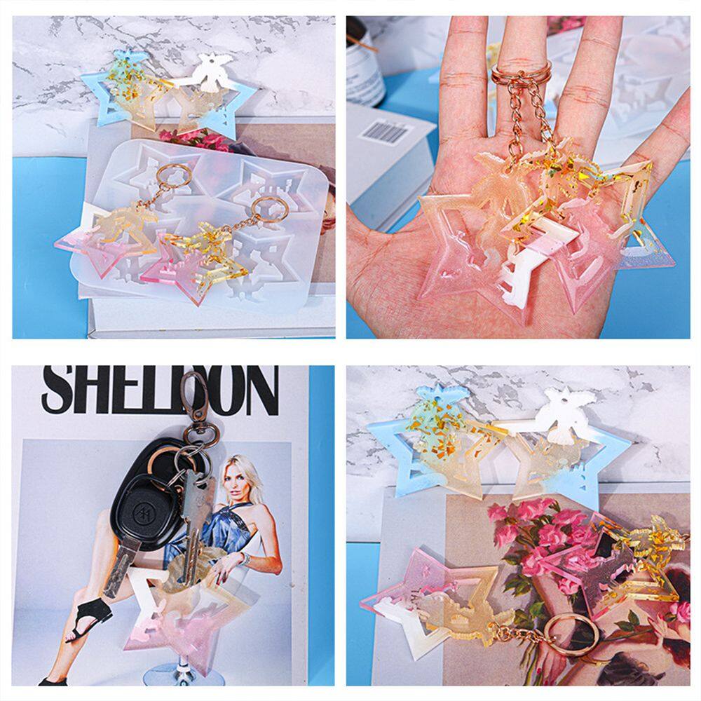 FINGERTIP ART Ornaments DIY Crafts Silicone Mold Resin Keychain Molds Five-pointed star Cute Keychains Epoxy Resin Kit