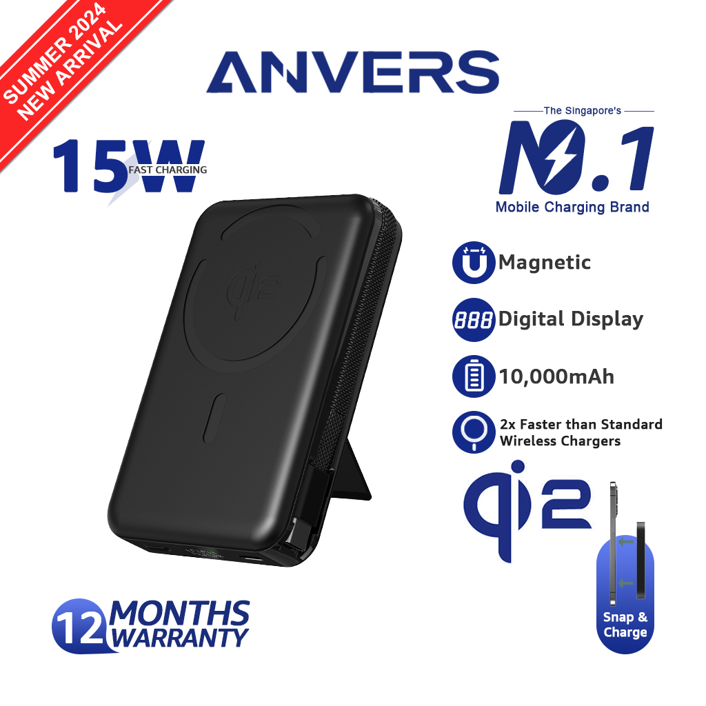 Anvers Magsafe Power Bank 10000mAh Wireless Magnetic Battery Pack Fast Charging Portable Charger for iPhone 16/15/14/13/12