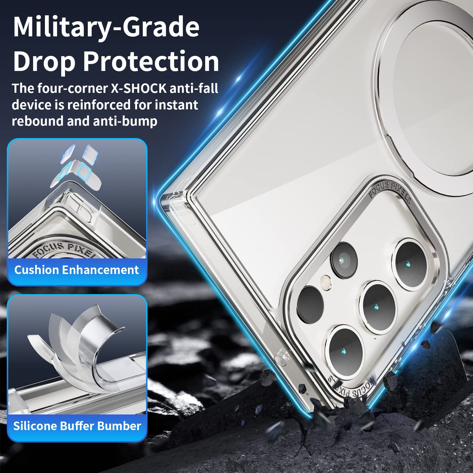 ✔️ Elevated Camera Protection — Camera bump to protect protruding camera lens for Samsung S23 series' protruding lens, preventing it from getting grazed on surface