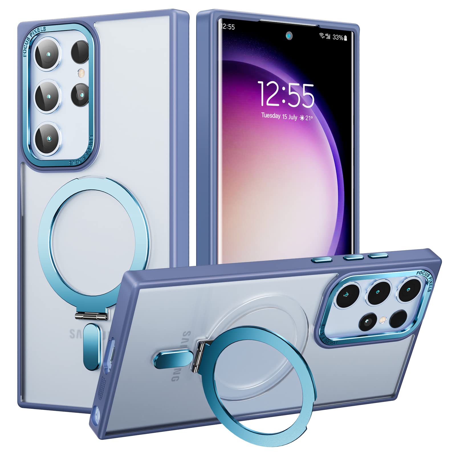 Anvers for Samsung Galaxy S23 Ultra with Magnetic Invisible Stand Shockproof Translucent Matte Ring Holder Phone Case