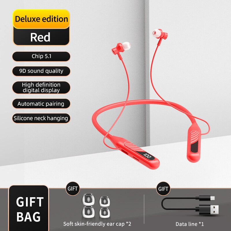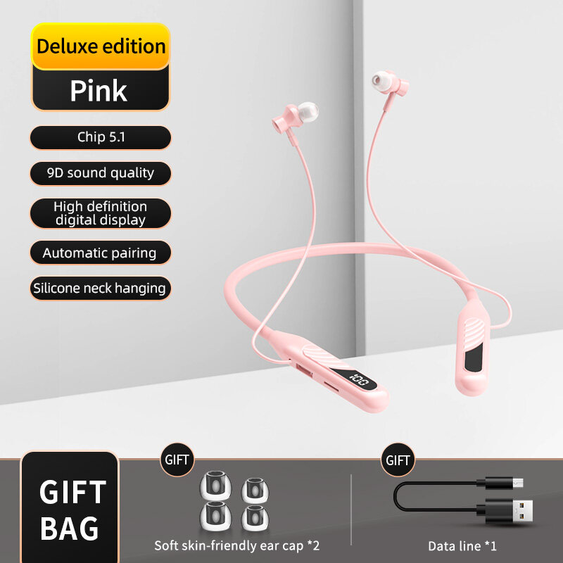 【1800hour long battery life】TWS Bluetooth Earphone Stereo Wireless Neck Hanging Headphone with mic Gaming Headset Deep Bass Noise Cancellation Type-c Earbuds
