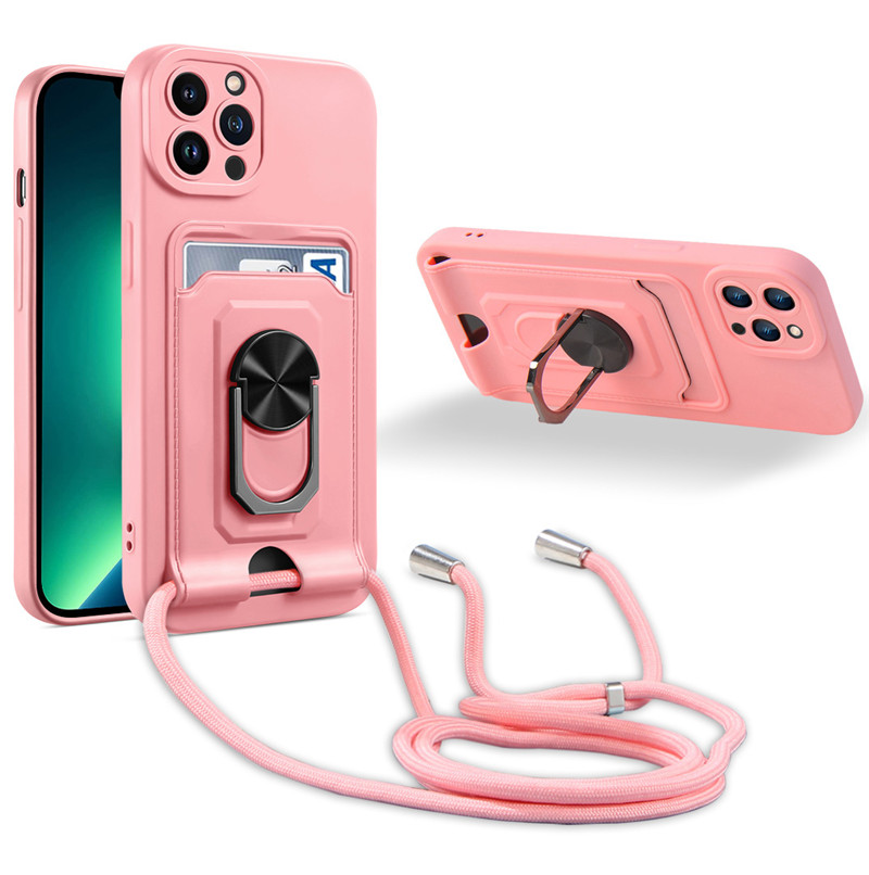 For Apple iPhone 15 14 13 11 12 Pro Max Plus mini Phone Case, Crossbody Necklace Strap Lanyard Magnetic Ring Card Slots Holder Cover