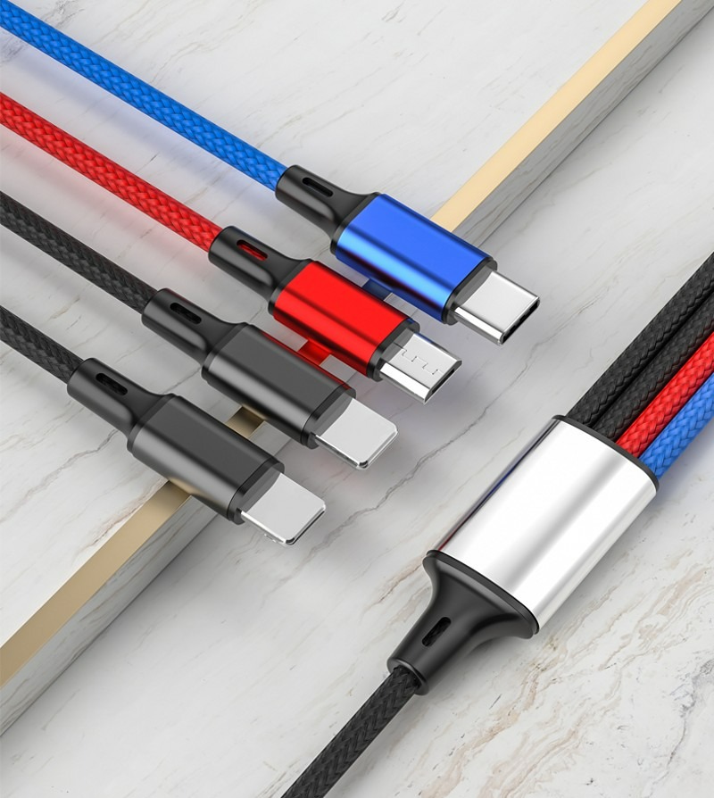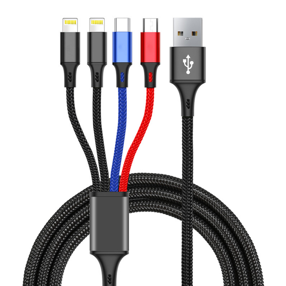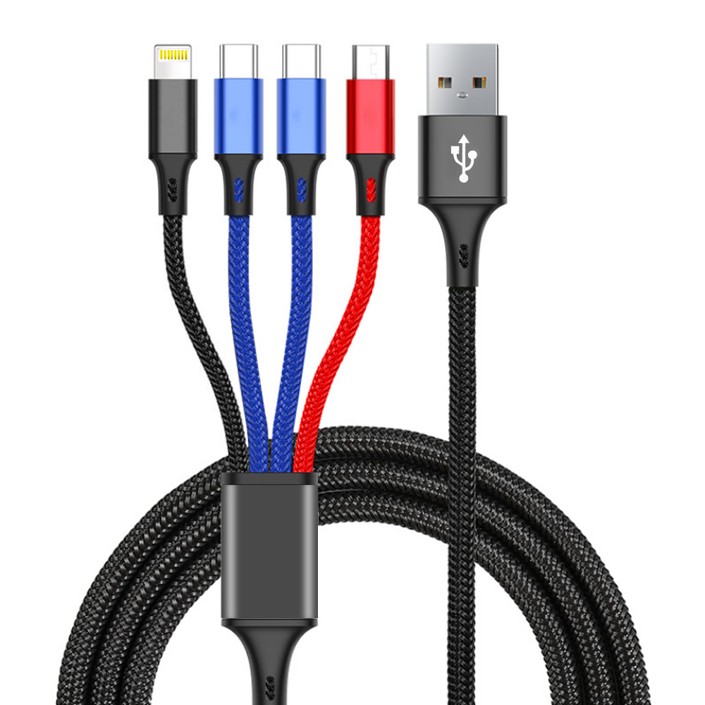 4 in1 Super Fast Charging Cable iPhone/Micro USB/Type C Data Cord for Huawei Samsung Xiaomi Quick Charge