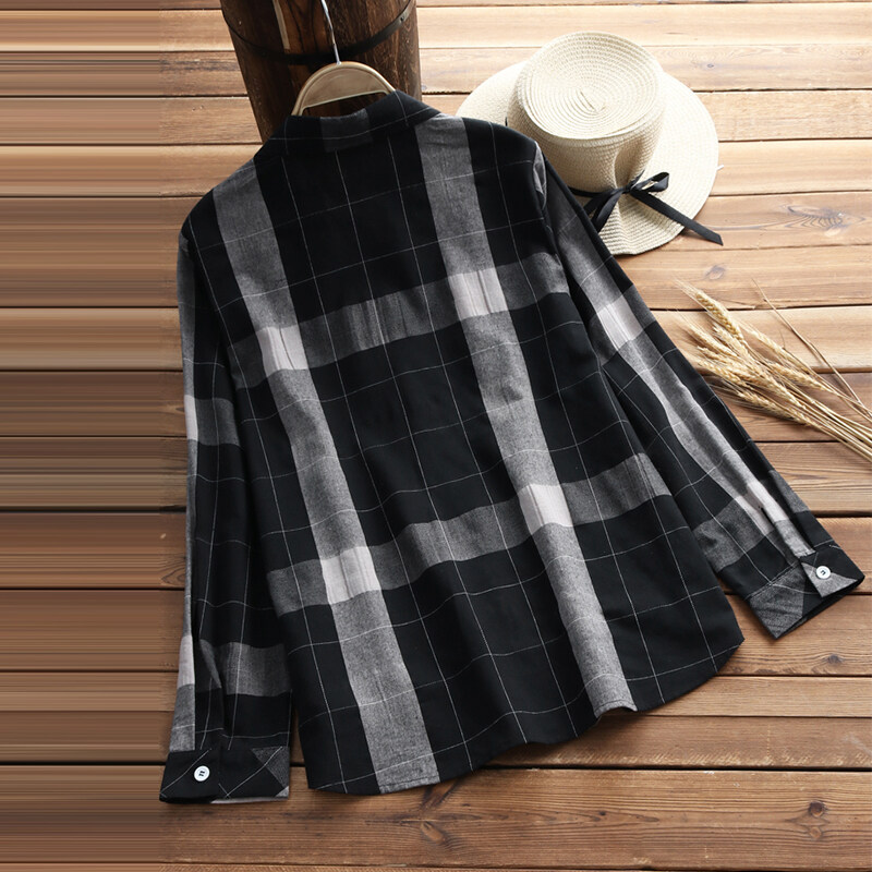 Fancystyle Gracila Women Check Plaid Long Sleeve Casual Loose Tops Shirt Blouse Plus Size