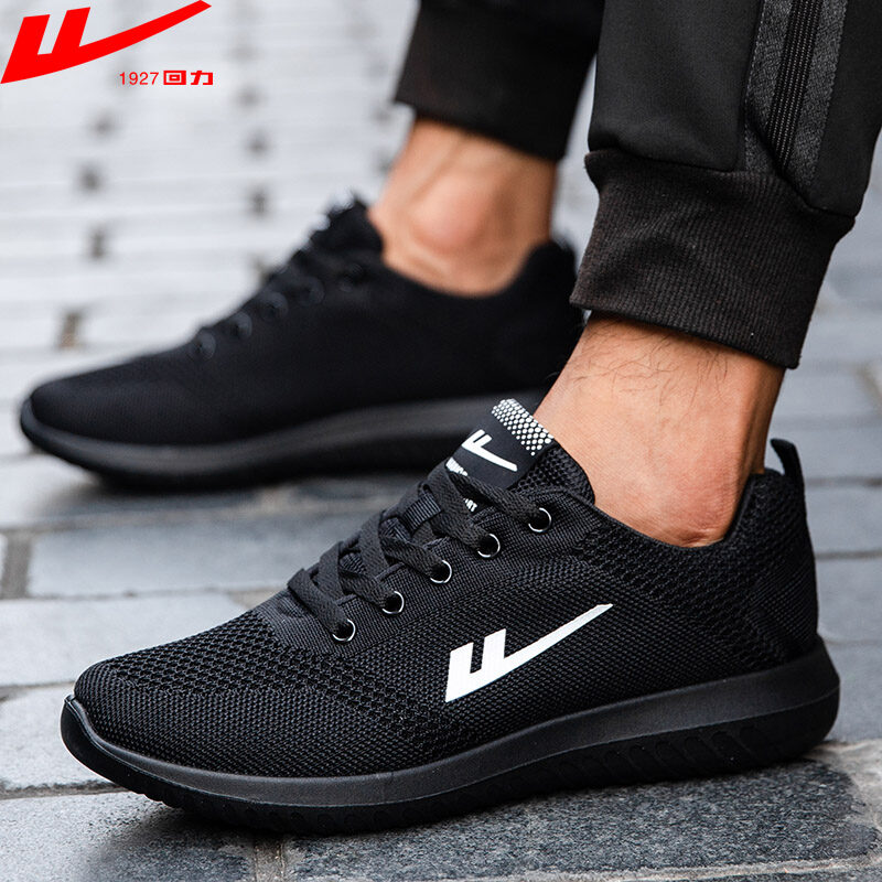 Warrior Men's Sneakers Men's Casual Breathable Non-Slip Sneakers Soft Bottom All Black Spring and Autumn Trendy Shoes Mesh Running Shoes