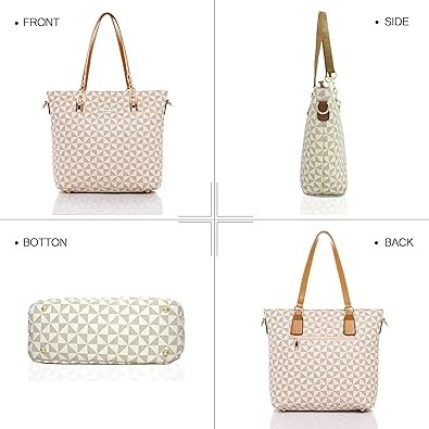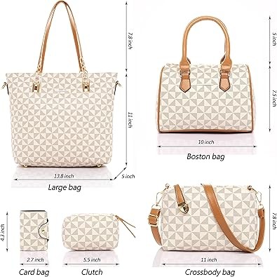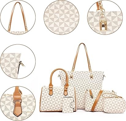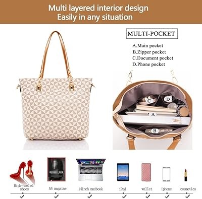 • 2E-youth 5pcs purse set designer handbags for women! Beige purse color matching design, interpretation of a simple sense of fashion. Multi layered interior design, you can easily in any situation.Durable large tote bag can hold 14 inch Laptop or tablet,A4 documents or books, and your favorite high heels.Satchel shoulder bag can hold coin purse,long wallet,sunglasses,umbrella,cosmetics and other items.2E-youth clutch purse can hold your keys,lipstick,and other little items;