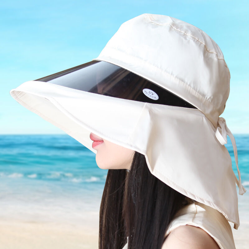 Shenhelun Summer Women's UV Mirror Big Brim Sun Hat Face Covering Neck Guard Sun Hat Waterproof Sun Protection UV Protection Korean Style