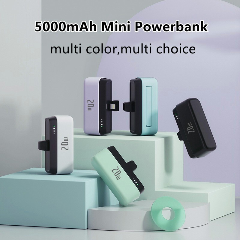 PD20W Fast Charging Powerbank 5000mah Mini Power Bank with LED Light Phone Holder Mobile Emergency Power