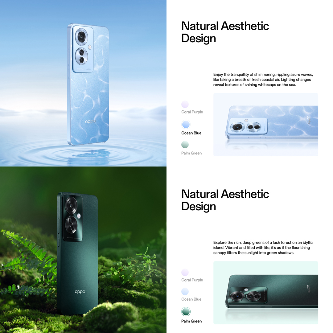 OPPO Reno11 F 5G 16(8+8GB) + 256GB / 64MP Ultra-Clear Triple Camera / 67W SUPERVOOC / IP65 Water & Dust Rating / 2 Years Local Warranty / Free Sports Bluetooth Headset
