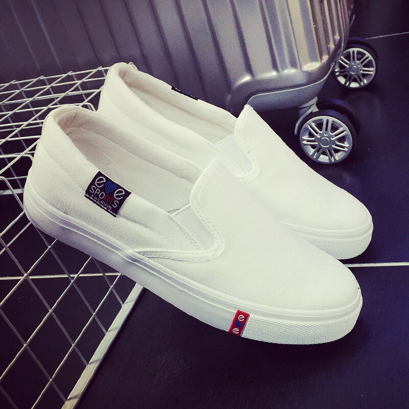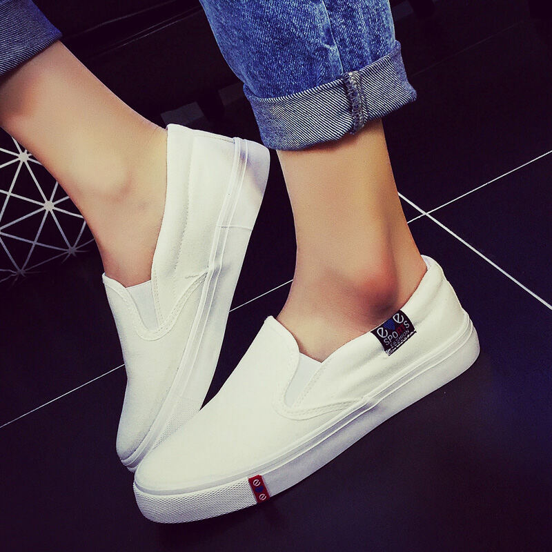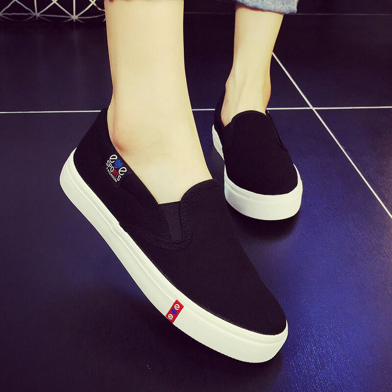 Korean Style Slip-on Loafers Flat Heel White Cloth Shoes Flat Black Canvas Shoes Women's White Shoes Casual Shoes Women's Shoes