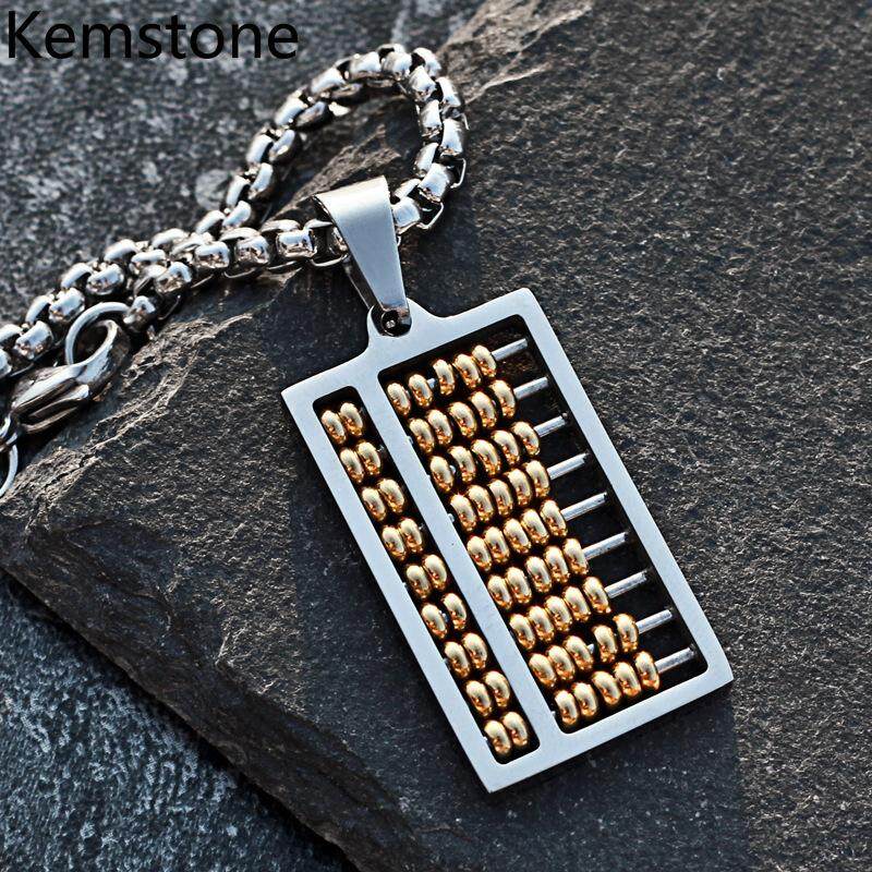 Kemstone Fashion Titanium Steel Abacus Creative Design Pendant Necklace for Women Men Jewelry Gifts