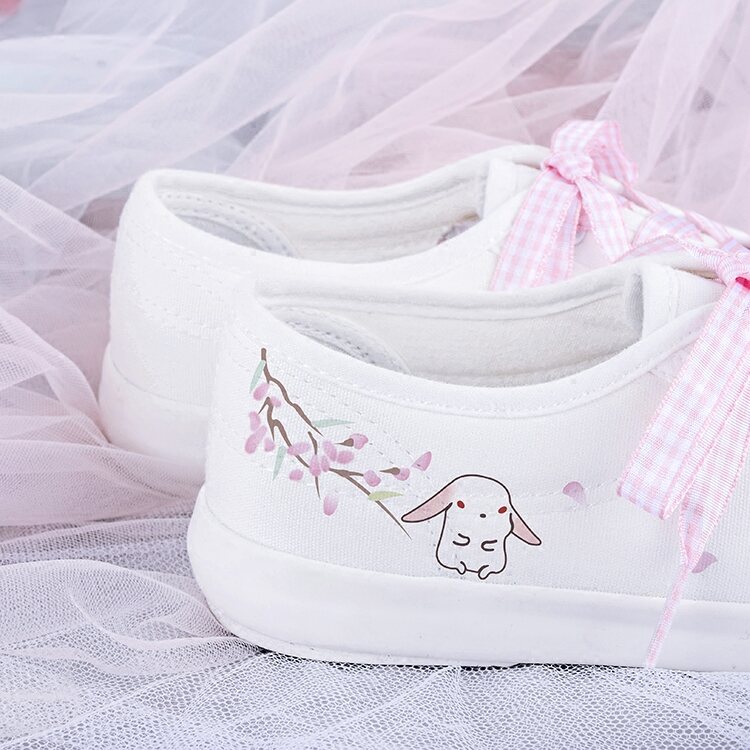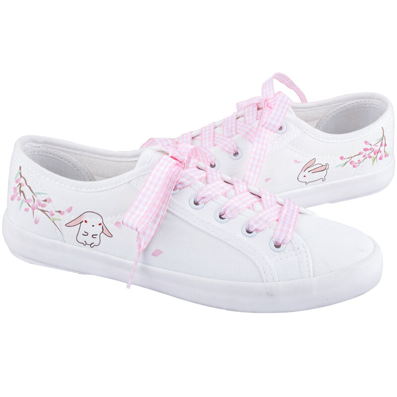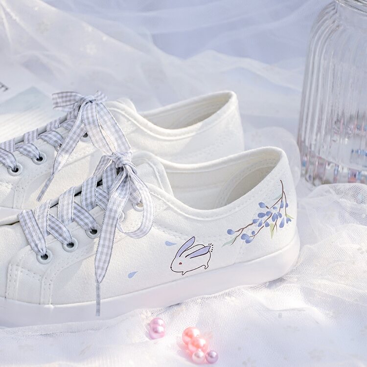 Summer 2021 Soft and Adorable Student Ancient Style White Shoes Low-Top Graffiti Canvas Shoes Women's Artistic Lace-up Flat Shoes