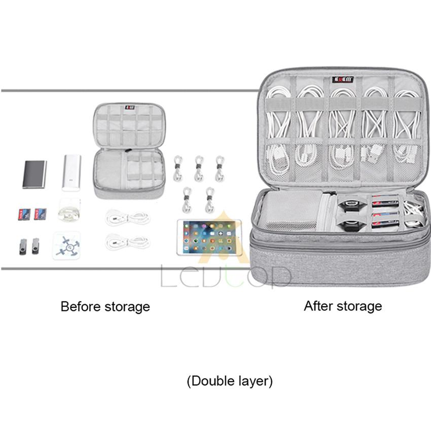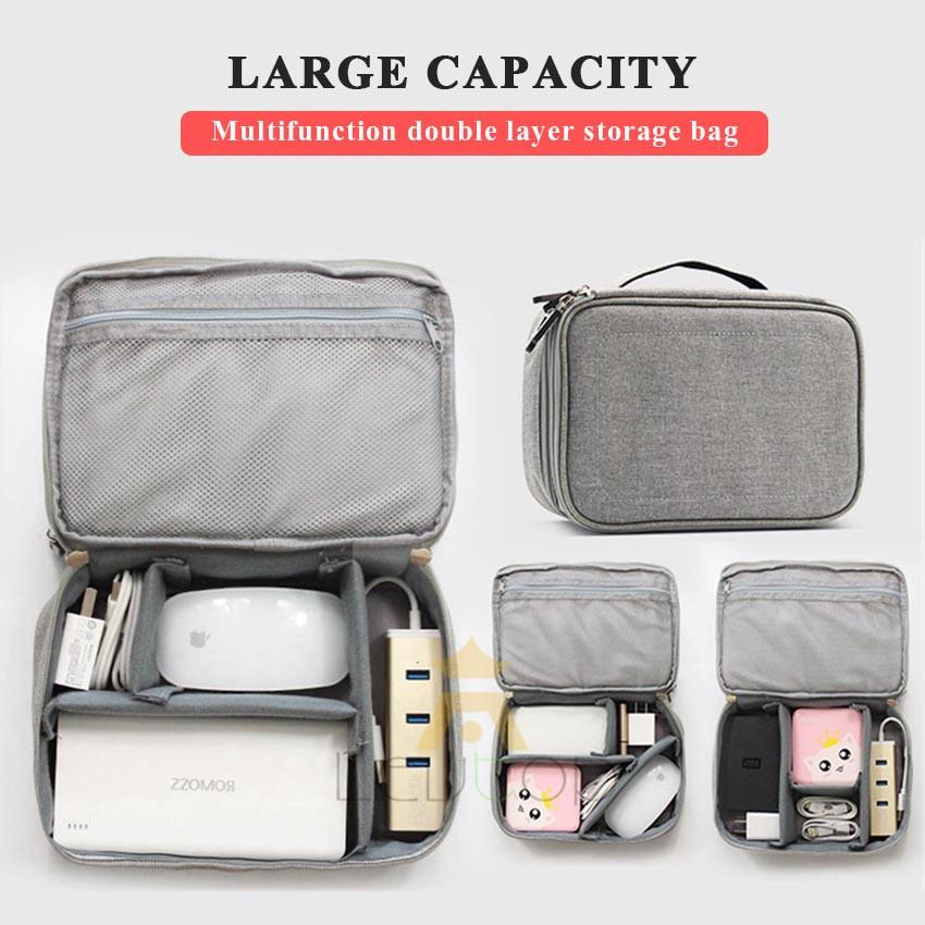 LEVTOP Travel Storage Bag Portable Double Layer Gadget Bag Electronic Digital Organizers Waterproof USB Storage Bag Multi-function Large Capacity Cable Organizer Bag