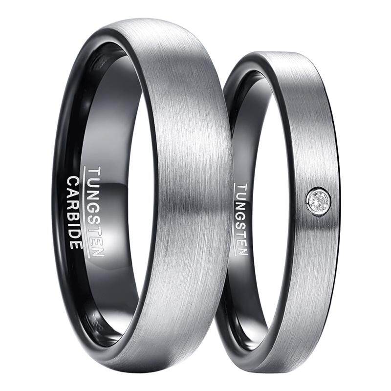 4mm 6mm Duo Tone Tungsten Carbide Rings for Men Women Brushed Finish Couple Wedding Band Sets Comfort Fit Size 7-14