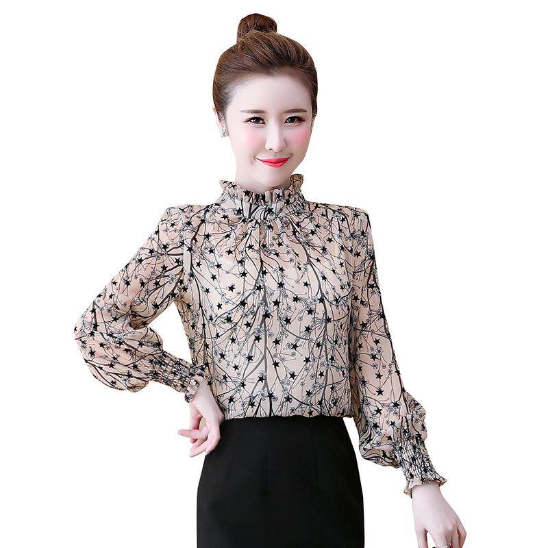 AFEG new Korean women's fashion casual long-sleeved floral chiffon wild temperament elegant blouses
