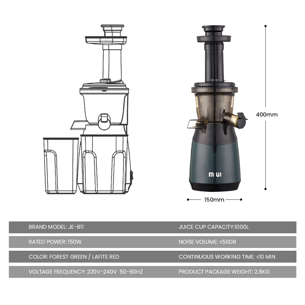 This is the first small slow speed juicer that we invented to save space. No similar products are found on the market.Its filter is carefully designed, it is easy to clean, and it is an innovative patented technology,we call it Mini-Filterfree.In addition to not occupying space, it keep low noise when working.It uses the same motor and screw speed as the huge slow speed juicer, which can achieve 43 speeds per minute, so it is an excellent slow speed cold juicer.