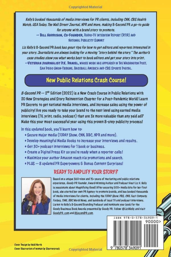 This updated 8-Second PR (2022) can teach you how to develop a Wow Story, relevant media hooks and powerful pitches to secure hundreds of national, local and podcast interviews.