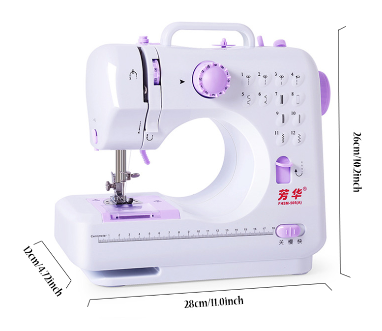 Original Fanghua 505A Mini Desktop Electric Sewing Machine 12 Stitches Household Multifunction Double Thread And Speed Free-Arm Crafting Mending LED