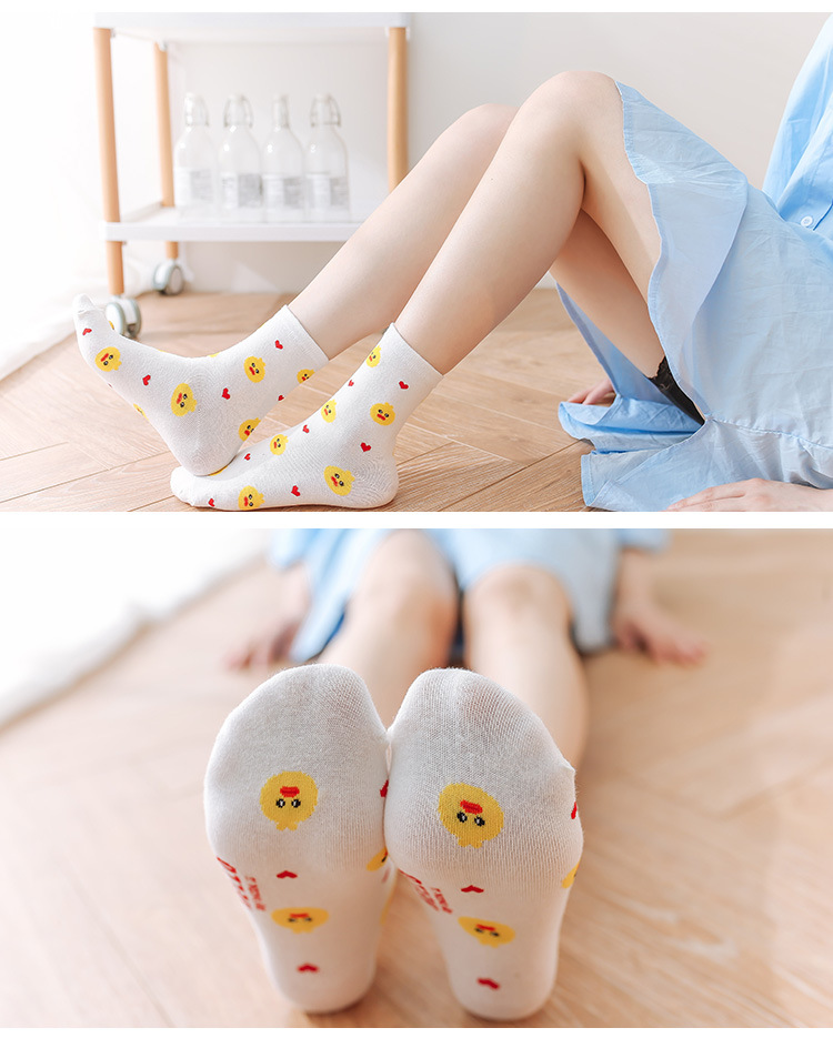 (10 pairs, 10 colors) Brown bear socks For Women Men Kids Children Cute Cartoon Short Socks