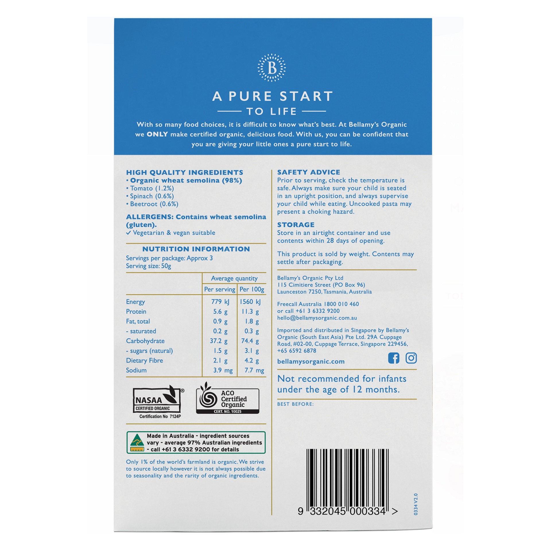 Bellamy's Organic Veggie Macaroni 175g