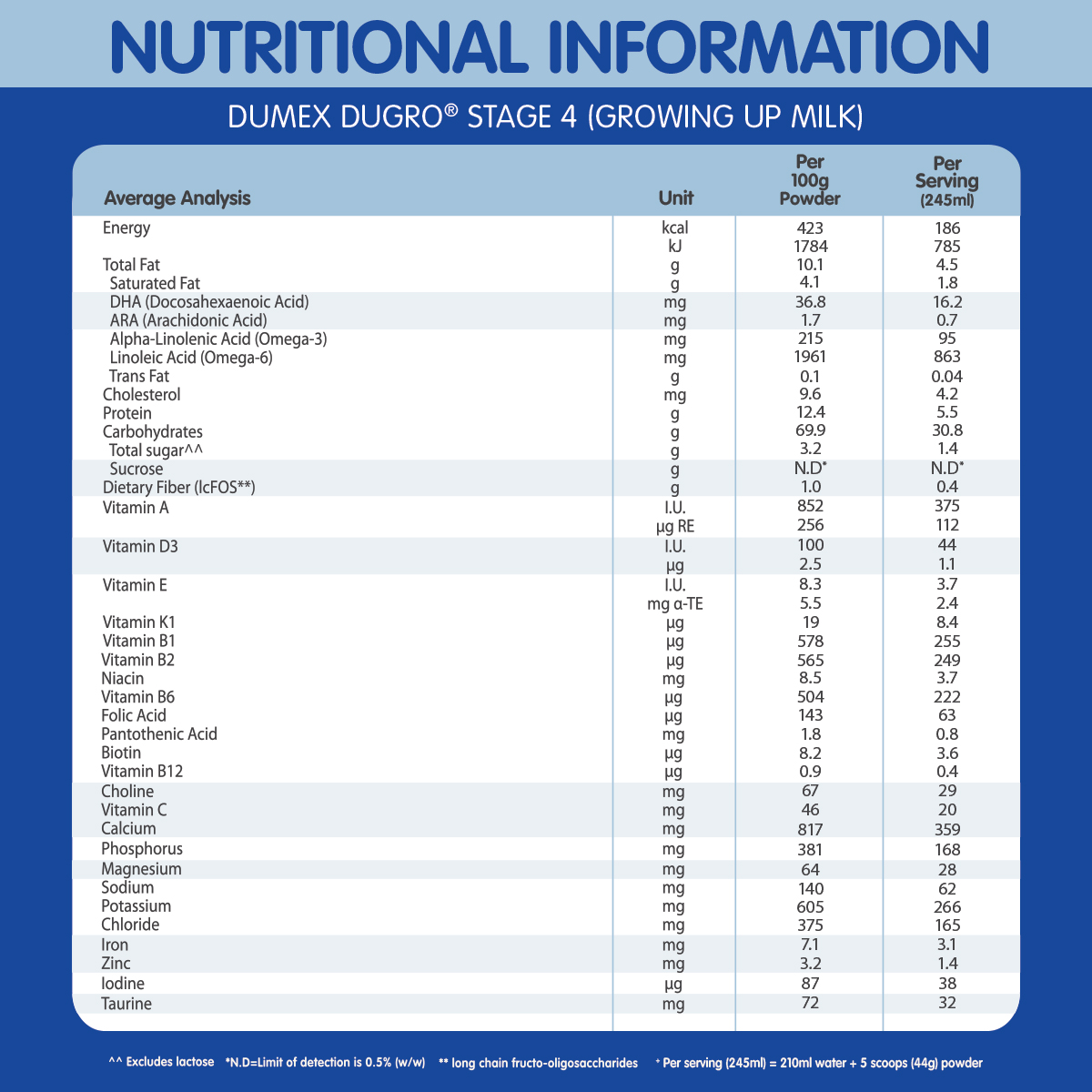 Dumex Dugro Stage 4 Growing Up Kid Milk Formula (1.6kg) x 2