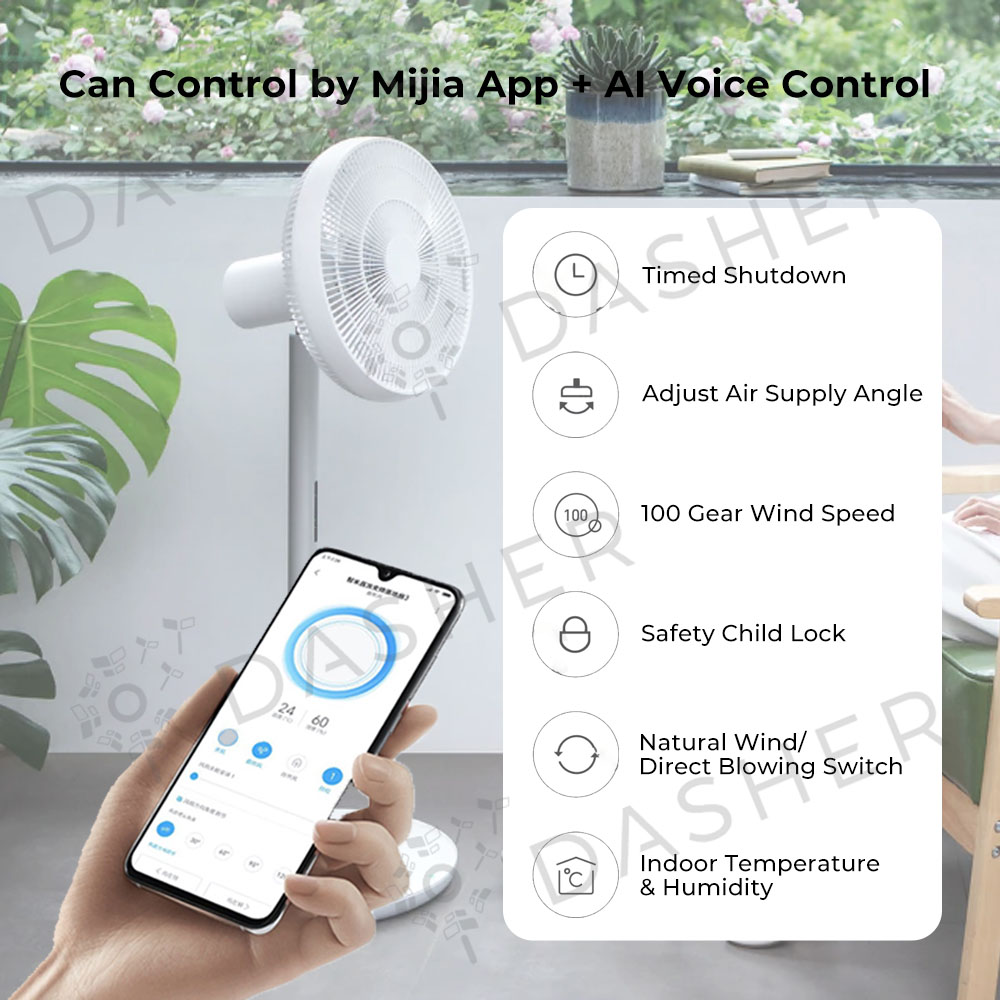 Xiaomi Smartmi Wireless Standing Fan 3 - Mijia App Smart Control | Built-In Battery with Remote Control | AI Voice Control