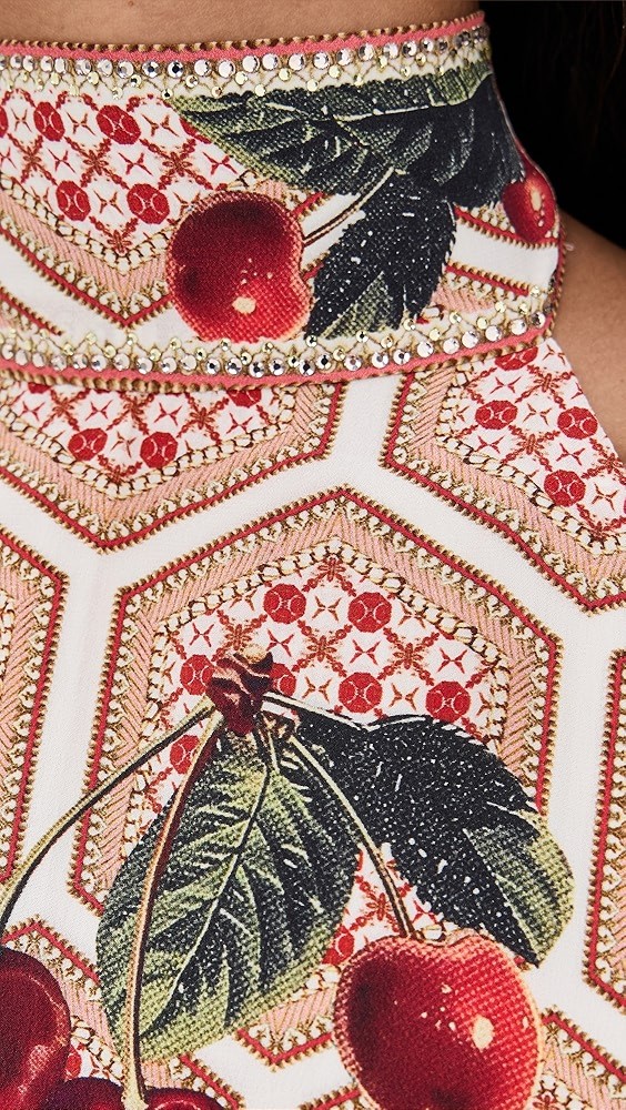 Tie and rhinestone trim at neckline