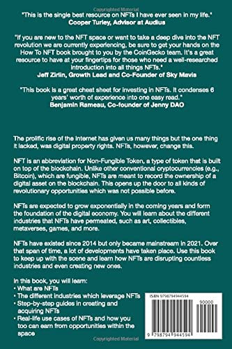 NFTs have existed since 2014 but only became mainstream in 2021. Over that span of time, a lot of developments have taken place. Use this book to keep up with the scene and learn how NFTs are disrupting countless industries and even creating new ones.