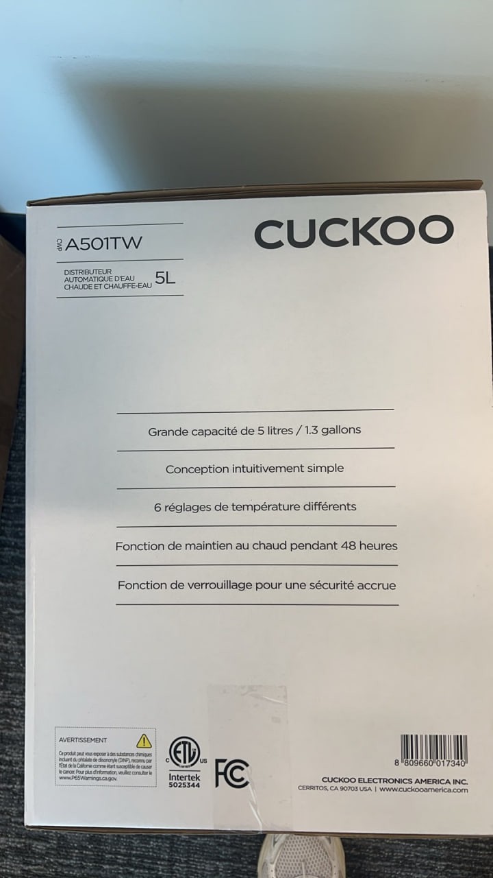 Cuckoo Insulated Electric Kettle Water Dispenser 5L CWP-A501TW (1 serving)