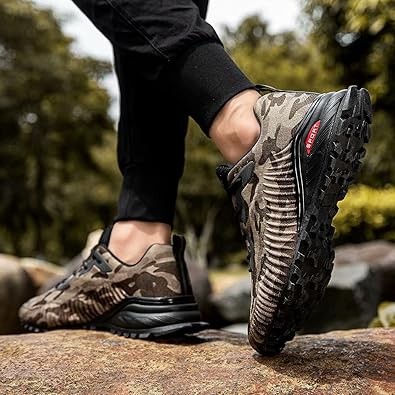• VERY FASHIONABLE: The outdoor walking shoes include camouflage, black and red colors, which makes this trail running shoe more attractive. The men's camouflage fashion sneakers are a great choice for many outdoor enthusiasts.