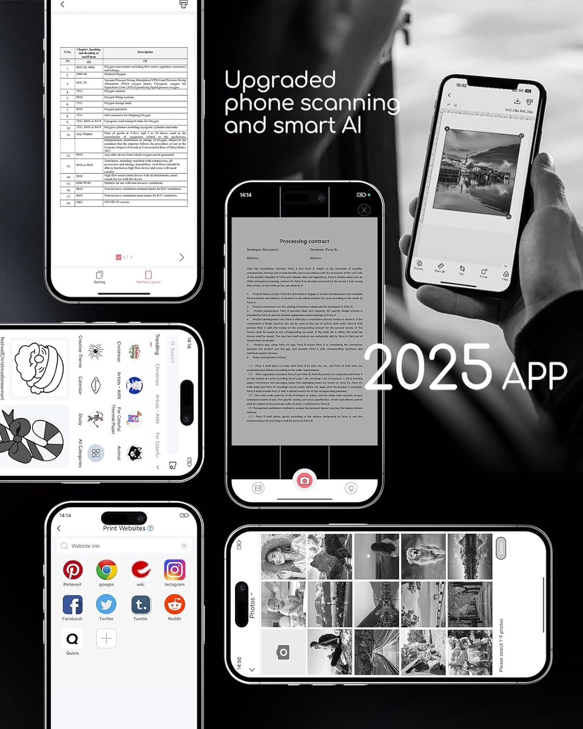 Inkless Printer [Affordable & Inkless Printing]: This Bluetooth mobile printer uses advanced thermal technology, eliminating the need for ink, toner, or ribbon during printing, eliminating the need for clogging or cleaning. (Note: Only thermal paper is supported, not regular copy paper. Black and white printing only.)