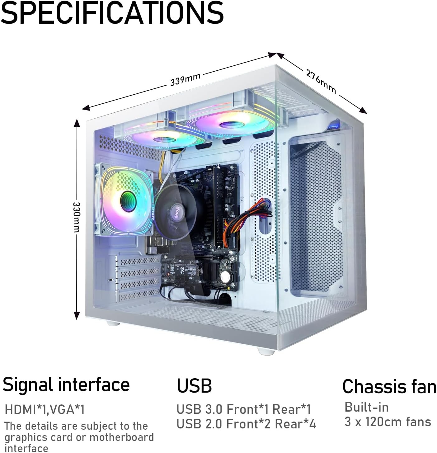 • Thoughtful Design, Stylish Appearance: Explore unlimited possibilities with an innovative vertical desktop PC that combines versatility and power. Instead of a boring black box, it features a double-sided tempered clear glass panel with color-changing RGB FAN that blends perfectly into your space. The top is designed with multiple ports for you to connect your devices quickly and easily. With smooth airflow and lower noise levels, this tower PC computer stays quiet even when running at peak performance levels.