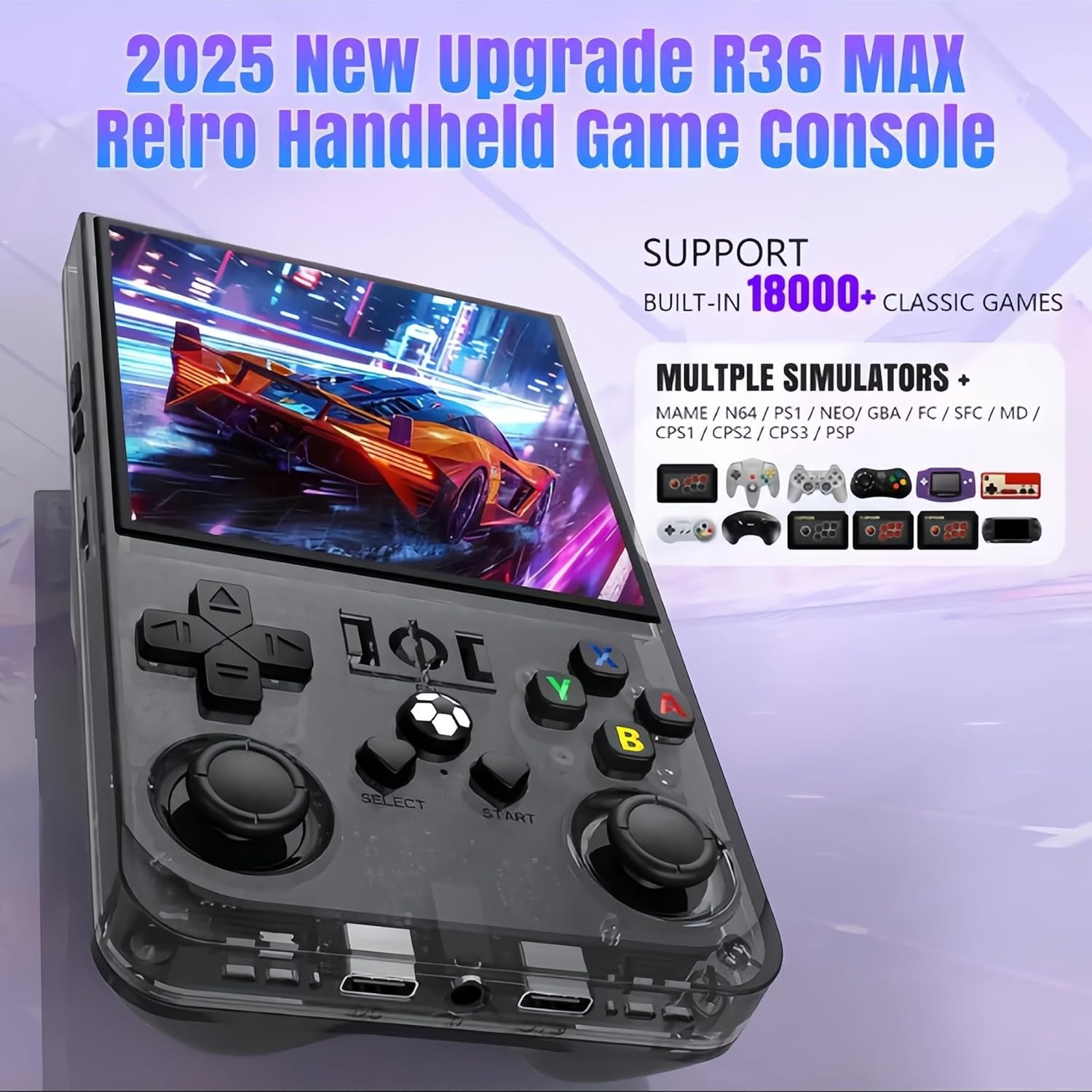 R36MAX Vibrant Visuals with 4 Inch IPS Screen: This2025 New Upgrade R36s 4-inch IPS screen is a real standout. resolution of 720*720 flaunts vibrant colors and razor-sharp visuals, instantly elevating your gaming fun. When you're embarking on epic adventures or engaging in high-speed chases, every scene comes to life vividly. The advanced display tech guarantees clear images, easing eye strain during long play. It's like a portal to a more engaging gaming realm, making each session a pleasure.