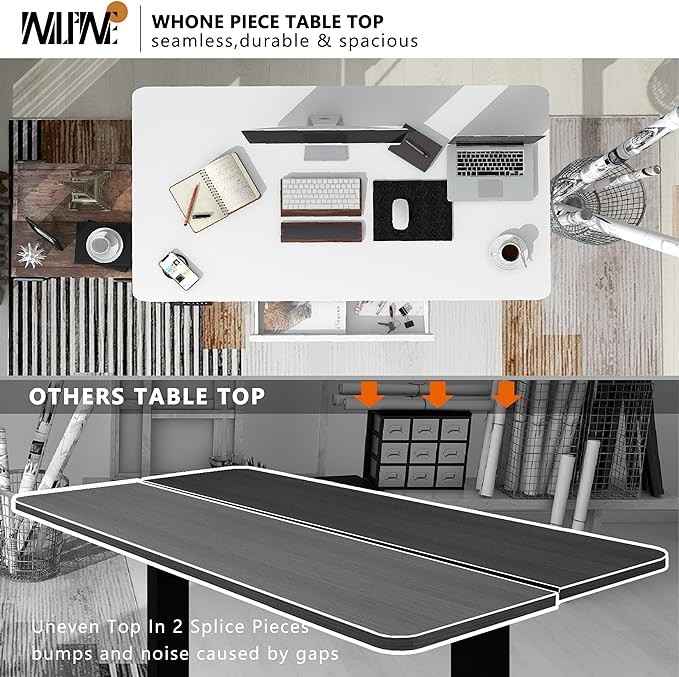 【Spacious One Piece Top Work Space】Unlike other adjustable desk products with split into 2 or 3 boards, Win Up Time Standing Desk One Piece Top provides a completely smooth surface. Easy to clean and eliminates bumps and noise caused by gaps. 0.7 inch solid wood tabletop of this adjustable height desk, enough work area for 3 monitors, laptop, keyboard and other work materials.