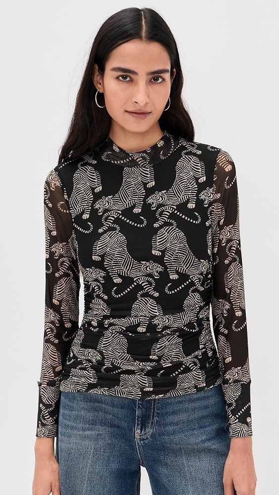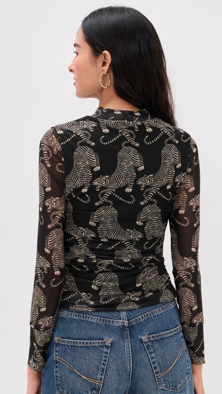 Striped Tigers Black Tulle Blouse